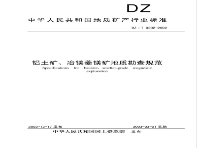 中文名称:铝土矿、冶镁菱镁矿地质勘查规范