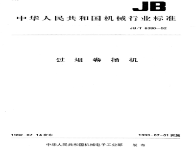 本标准规定了过坝卷场机的型式和基本参数、技术要求、试验方法、验收规则和标志、包装、运输、贮存等。 本标准适用于中、小水电站、水利枢纽工程、河流堰闸、水库拦河坝等设施处,供船只、木、竹排过坝峰之用,也可做其他牵引运输之用。 JB/T 6380-1992 过坝卷扬机 JB/T6380-1992 标准下载解压密码:www.bzxz.net
