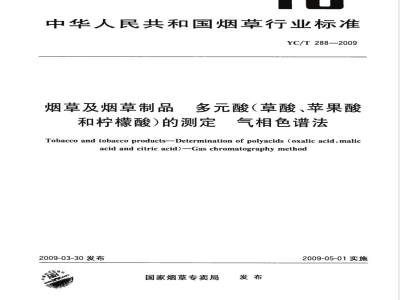 Tobacco and tobacco products-Determination of polyacids (oxalic acid,malicacid and citricacid)-Gas chromatographymethod2009-03-30发布
