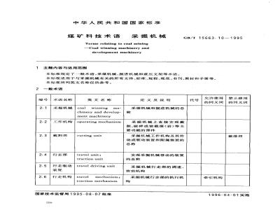 本标准规定了一般术语,采煤机械、掘进机械和液压支架等术语。GB/T15663.10—1995
