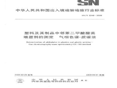 SN/T 2249-2009 塑料及其制品中邻苯二甲酸酯类增塑剂的测定 气相色谱-质谱法 SN/T2249-2009 标准下载解压密码:www.bzxz.net