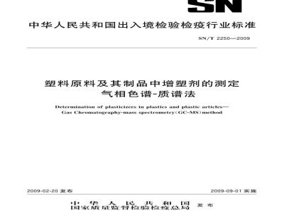 SN/T 2250-2009 塑料原料及其制品中增塑剂的测定 气相色谱-质谱法 SN/T2250-2009 标准下载解压密码:www.bzxz.net