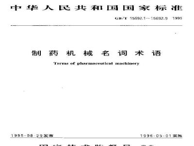G/15592.2—1595制约机械名问本语GB/T1592.4—1S55制药机械名词术语G1/T15527.7—10制颜机娠名词术语3制剂机械求语