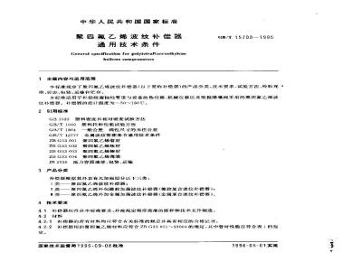 本标准规定了聚四氟乙烯波纹补偿器的产品分类、技术要求、试验方法、检验规则、标志、包装、运输和贮存。本标准适用于补偿耐腐蚀性管道与设备的热位移、机械位移以及吸振降噪而采用的聚四氟乙烯波纹补偿器。补偿器的设计温度为-50~180℃。 GB/T 15700-1995 聚四氟乙烯波纹补偿器通用技术条件 GB/T15700-1995 标准下载解压密码:www.bzxz.net