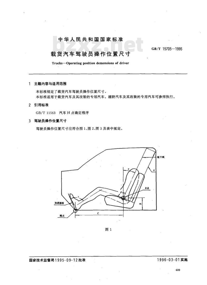 本标准规定了载货汽车驾驶员操作位置尺寸。GB/T15705—1995