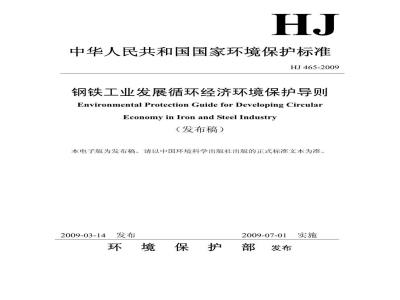 钢铁工业发展循环经济环境保护导则本标准适用于各级环境保护主管部门对钢铁工业发展循环经济的规划、建设和运行中污染的防治和环境管理。本标准也适用于指导钢铁企业在发展循环经济中加强污染控制。规范性引用文件