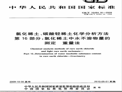 GB/T 16484.16-2009 氯化稀土、碳酸轻稀土化学分析方法 第16部分:氯化稀土中水不溶物量的测定 重量法 GB/T16484.16-2009 标准下载解压密码:www.bzxz.net