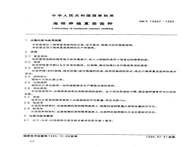 本标准规定了海带夏苗苗种的分类、技术要求、检验方法和检验规则。本标准适用于海带夏苗苗种的生产和销售。 GB/T 15807-1995 海带养殖夏苗苗种 GB/T15807-1995 标准下载解压密码:www.bzxz.net