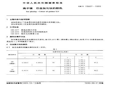 仿金氮化钛颜色是该膜层的反射色,按GB 3977第1章利第2章的规定,采用XY7.色度系统的色度坐标、和刺激值Y表示。