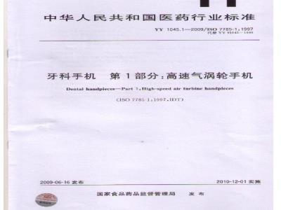 YY1045牙科手机标准】分为两个部分YY1045.1高速气涡轮手机