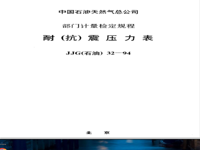 本检定规程适用于新生产、使用中和修理后的测量上限为0~100MPa的表壳内有灌充液和带阻尼件,具有耐(抗)震功能的直接指示(显示)式压力表。 JJG (石油) 32-1994 耐(抗)震压力表 JJG(石油)32-1994 标准下载解压密码:www.bzxz.net