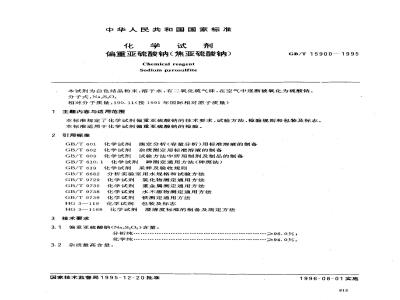本标准规定了化学试剂偏重亚硫酸钠的技术要求、试验方法、检验规则和包装及标志。本标准适用于化学试剂偏重亚硫酸钠的检验。 GB/T 15900-1995 化学试剂 偏重亚硫酸钠(焦亚硫酸钠) GB/T15900-1995 标准下载解压密码:www.bzxz.net