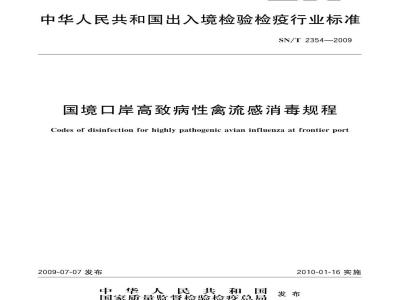 SN/T 2354-2009 国境口岸高致病性禽流感消毒规程 SN/T2354-2009 标准下载解压密码:www.bzxz.net