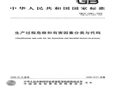 生产过程危险和有害因素分类与代码本标准规定了生产过程中各种主要危险和有害因素的分类代码。GB/T 13861—2009