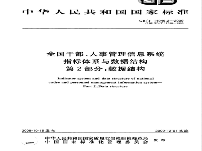 GB/T 14946.2-2009 全国干部、人事管理信息系统指标体系与数据结构 第2部分:全国干部、人事管理信息系统数据结构 GB/T14946.2-2009 标准下载解压密码:www.bzxz.net