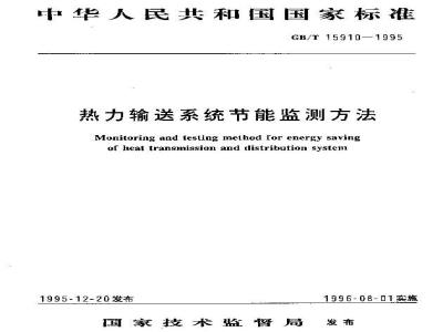 Monitoring and lesling meihod Ior energy savingof heal transinission and listribution systen1995-12-20发布