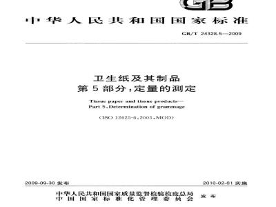 中文名称:卫生纸及其制品 第5部分:定量的测定