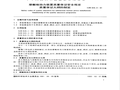 GJB 845.2-1991 潜艇核动力装置质量保证安全规定质量保证大纲的制定