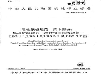 第3部分:单项材料规范层合预压纸板规范—LB3.1.1,LB3.1.2,LB3.3.1及LB3.3.2型JB/T10443.3—2004