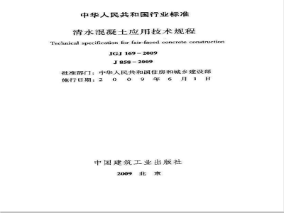 现批准《清水混凝土应用技术规程》为建筑工程行业标准编号为JGJ169-2009,自2009年6月1日起实施。其中,第3.0.4、4.2.3条为强制性条文,必须严格执行。本规程由我部标准定额研究所组织中国建筑工业出版社出版发行。