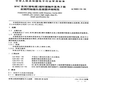 SJ 50681.18-1994 BNC系列(接电缆)插针接触件直角2级射频同轴插头连接器详细规范