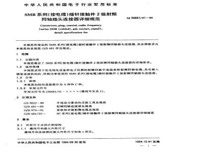 SJ 50681.41-1994 SMB系列(接电缆)插针接触件2级射频同轴插头连接器详细规范