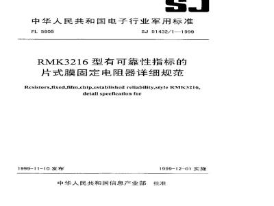SJ 51432.1-1999 RMK3216型有可靠性指标的片式膜固定电阻器详细规范