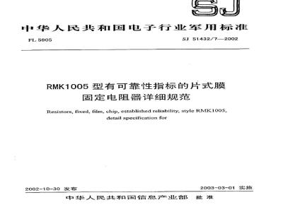 SJ 51432.7-2002 RMK1005型有可靠性指标的片式膜固定电阻器详细规范