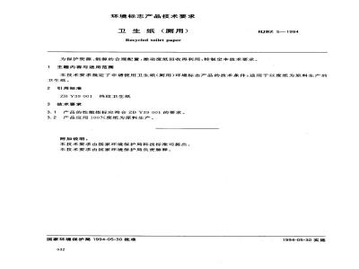 HJBZ 5-1994 卫生纸(厕用)
