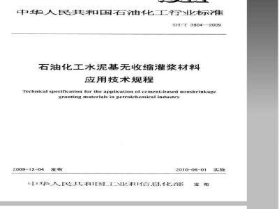 石油化工水泥基无收缩灌浆材料应用技术规程本规程规定了水泥基无收缩灌浆材料应用的基本规定、材料及其检验、施工及工程验收等规定本规程适用于石油化工企业采用水泥基无收缩灌浆材料进行基础灌浆、螺栓和钢筋铺固的构造设计、材料选用、材料性能检验、施工和质量验收。2规范性引用文件
