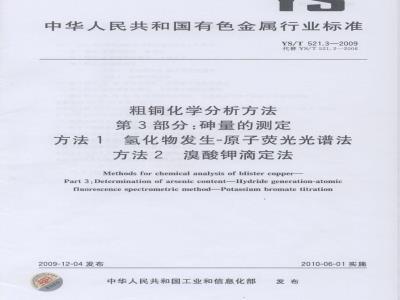 YS/T 521.3-2009 粗铜化学分析方法 第3部分:砷量的测定 方法1 氢化物发生-原子荧光光谱法 方法2 溴酸钾滴定法 YS/T521.3-2009 标准下载解压密码:www.bzxz.net