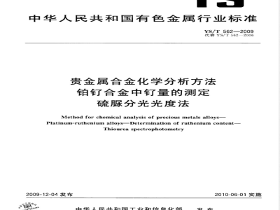中文名称:贵金属合金化学分析方法 铂钌合金中钌量的测定 硫脲分光光度法