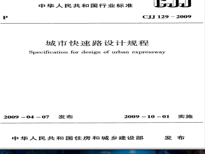 《城市快速路设计规程》的公告现批准《城市快速路设计规程》为行业标准,编号为CJJ129~2009,自2009年10月1日起实施。其中,第3.0.5、3.0.9、5.4.1、9.3.1、9.3.4条为强制性条文,必须严格执行。本规程由我部标准定额研究所组织中国建筑工业出版社出版发行。