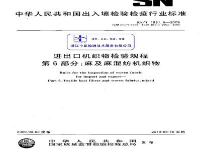 SN/T 1931.6-2009 进出口机织物检验规程 第6部分:麻及麻混纺机织物 SN/T1931.6-2009 标准下载解压密码:www.bzxz.net