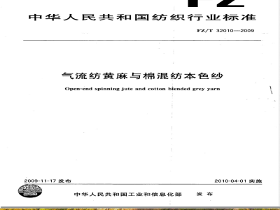 本标准规定了气流纺生产的黄麻纤维与棉纤维混纺的本色纱产品的技术要求、试验方法、检验规则及包装和要求。本标准适用于鉴定气流纺生产的黄麻与棉混纺本色纱的品质。 FZ/T 32010-2009 气流纺黄麻棉混纺本色纱 FZ/T32010-2009 标准下载解压密码:www.bzxz.net