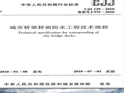 CJJ 139-2010 城市桥梁桥面防水工程技术规程 CJJ139-2010 标准下载解压密码:www.bzxz.net