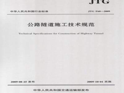 现公布《公路隧道施工技术规范》(JTGF602009).作为公路工程行业标准,自2009年10月1日起施行,原《公路隧道施工技术规范》(JTJ042—94)同时废止。