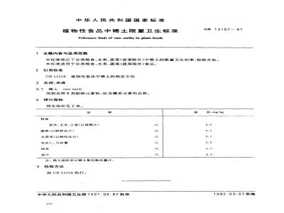 GB 13107-1991 植物性食品中稀土限量卫生标准 GB13107-1991 标准下载解压密码:www.bzxz.net