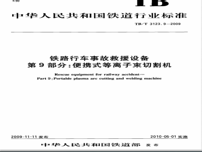 TB/T 3123.9-2009 铁路行车事故救援设备 第9部分:便携式等离子束切割机 TB/T3123.9-2009 标准下载解压密码:www.bzxz.net