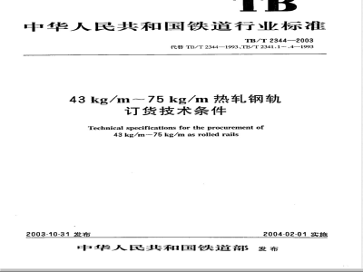 代替TB/T2344—1993、TB/T2341.1~.4—199343 kg/m~75 kg/m 热轧钢轨2