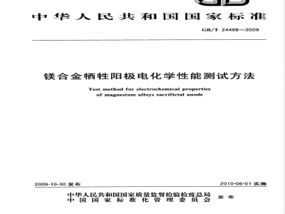 镁合金阳极电化学性能测试方法Test method for electrochemical propertiesof magnesium alloys sacrificial anode2009-10-30发布