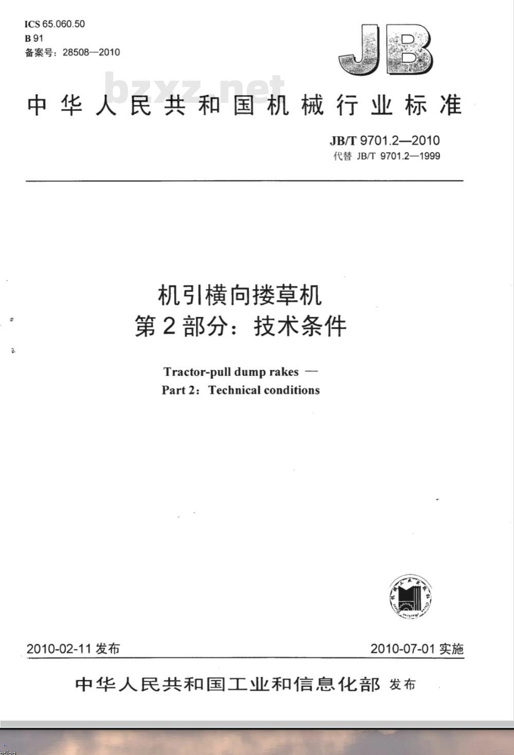 机引横向楼草机第2部分:技术条件JB/T9701.2—2010