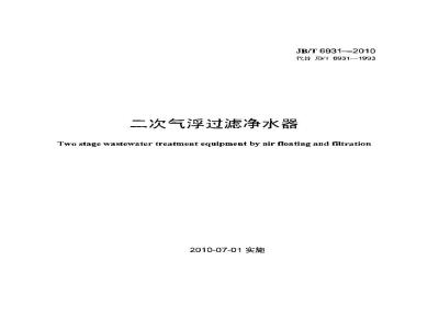 本标准规定了溶气气浮过滤净水器的分类与命名、结构型式、基本参数、技术要求、试验方法、检验规则及标志、包装、运输和贮存等。本标准适用于以气浮、过滤工艺为主,适宜处理含有疏水性和经药剂调整后成疏水性的比重接近于1的污染物的废水净化处理,也适用于各类生物处理设备排出的生物泥膜使之与水分离和给水净化的净水器。本装置适用于处理能力为(5~100)t/h的净水装置。 JB/T 6931-2010 二次气浮过滤净水器 JB/T6931-2010 标准下载解压密码:www.bzxz.net