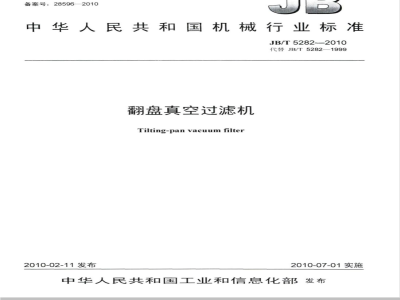 本标准代替JB/T5282一1999《翻斗真空过滤机》。本标准与JB/T5282一1999相比,主要变化如下:一标准名称《翻斗真空过滤机》改为《翻盘真空过滤机》;一系列和基本参数作了补充和修改;一对制造要求中一些技术指标进行了修改;一取消质量保证期。