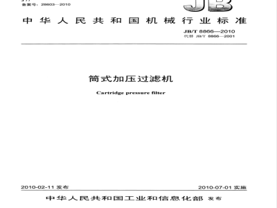 本标准是对JB/T8866—2001《筒式加压过滤机》进行修订。本标准与JB/T8866—2001标准相比,主要变化如下:新增筒式加压过滤机的材料选用标准:修改了术语和定义;