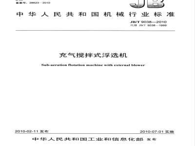 本标准规定了充气搅拌式浮选机的产品分类、技术要求、试验方法、检验规则、标志、标签、使用说明书、包装、运输及贮存。本标准适用于充气搅拌式浮选机。该机主要用于粒度和密度较大的难选的有色金属及非金属矿物的浮选作业。 JB/T 9038-2010 充气搅拌式浮选机 JB/T9038-2010 标准下载解压密码:www.bzxz.net