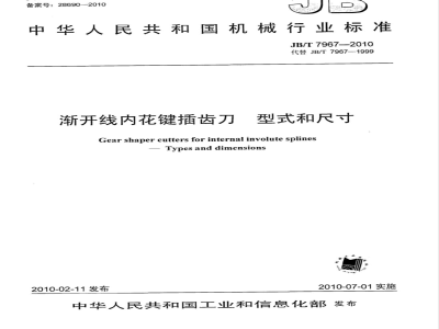 本标准代替JB/T7967一1999《渐开线内花键插齿刀型式和尺寸》。