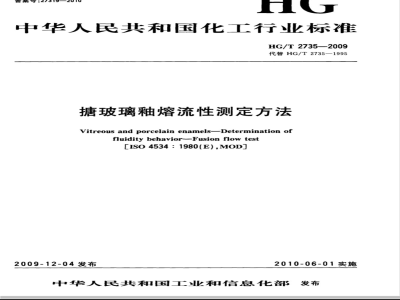 本标准规定了搪玻璃釉熔流性的试验方法。本标准适用于搪玻璃釉高温熔流性能的测定。 HG/T 2735-2009 搪玻璃釉熔流性测定方法 HG/T2735-2009 标准下载解压密码:www.bzxz.net