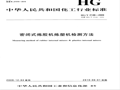 本标准代替HG/T21481991《密闭式炼胶机炼塑机检测方法》。本标准与HG/T2148一1991相比主要变化如下:HG/T2148—2009