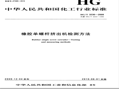 本标准代替HG/T3230—1989《橡胶单螺杆挤出机检测方法》。本标准与HG/T3230一1989相比主要变化如下:HG/T3230—2009